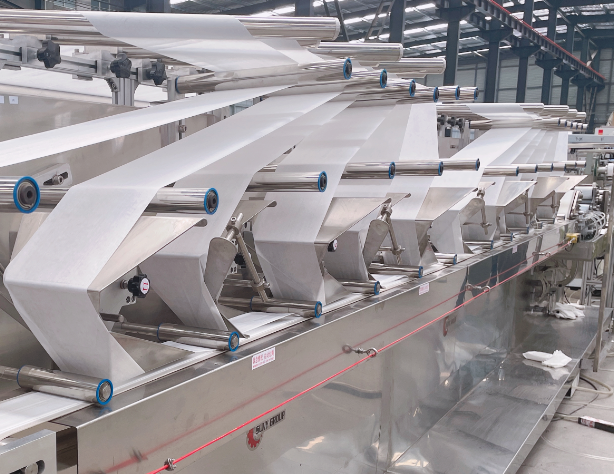 ? ? 估計(jì)還有很多人想問加工廠是不是需要很多人,這個(gè)是不需要的,現(xiàn)在濕巾生產(chǎn)過程非常簡(jiǎn)單,海德晟自主研發(fā)生產(chǎn)的全自動(dòng)濕巾機(jī),從上料,分切,折疊,加濕,計(jì)數(shù),貼標(biāo),打碼,開口,成型,包裝,封口等,全部都是一體化操作,減少人工,提升效率。
